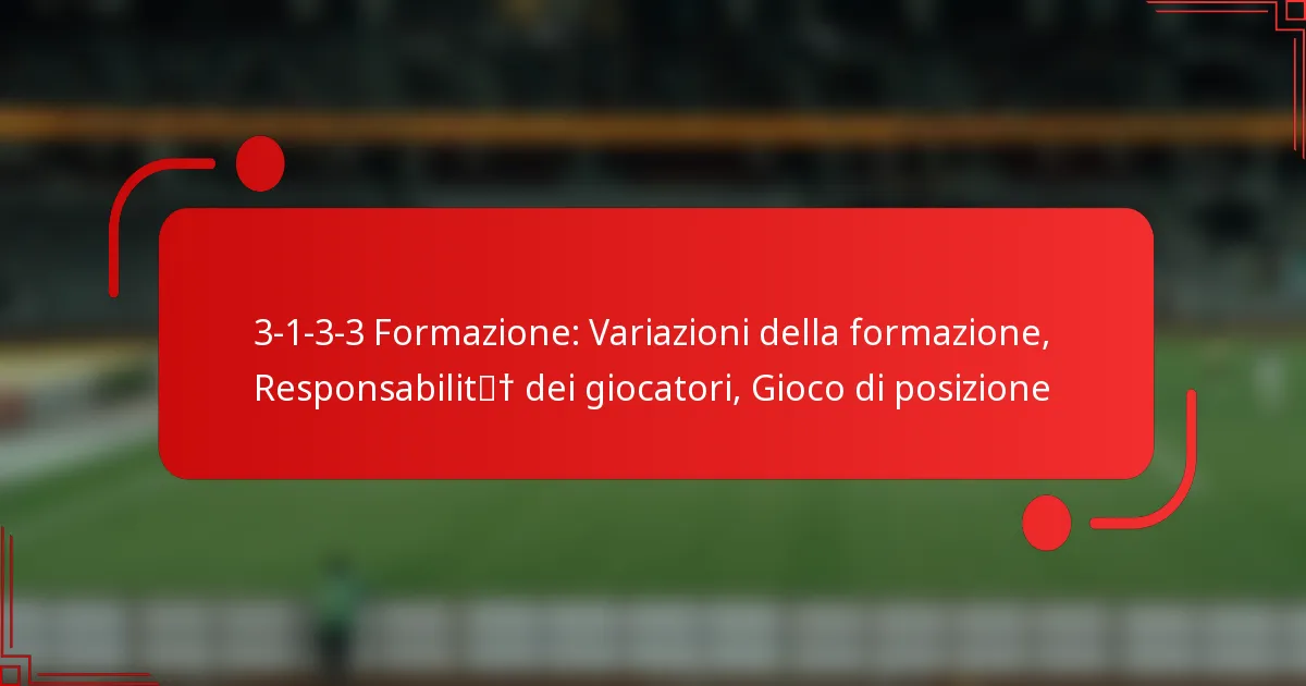 La formazione 3-1-3-3 è un assetto tattico nel calcio che bilancia la potenza offensiva con la stabilità difensiva, caratterizzato da tre difensori, un centrocampista difensivo, tre centrocampisti e tre attaccanti. Questo schema consente alle squadre di controllare il centrocampo mentre creano opportunità di attacco, rendendolo una scelta versatile per varie situazioni di gioco. Comprendere i ruoli e le responsabilità distintive all’interno di questa formazione è fondamentale per massimizzare la sua efficacia sul campo.