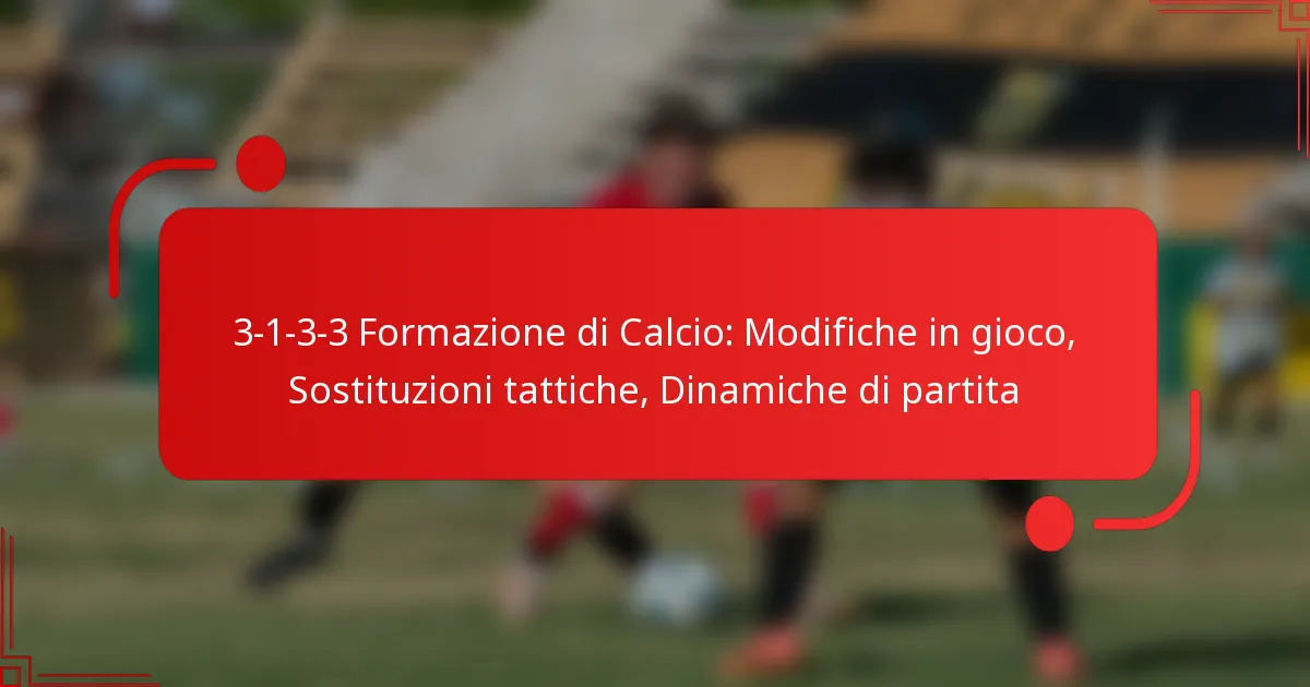 La formazione calcistica 3-1-3-3 è un assetto tattico che enfatizza una forte presenza a centrocampo mantenendo una solida linea difensiva. Gli aggiustamenti in partita e le sostituzioni tattiche efficaci sono essenziali per ottimizzare le prestazioni della squadra e adattarsi al dinamico flusso della partita. Alterando strategicamente i ruoli e le posizioni dei giocatori, le squadre possono rispondere alle tattiche degli avversari e aumentare le loro possibilità di successo.