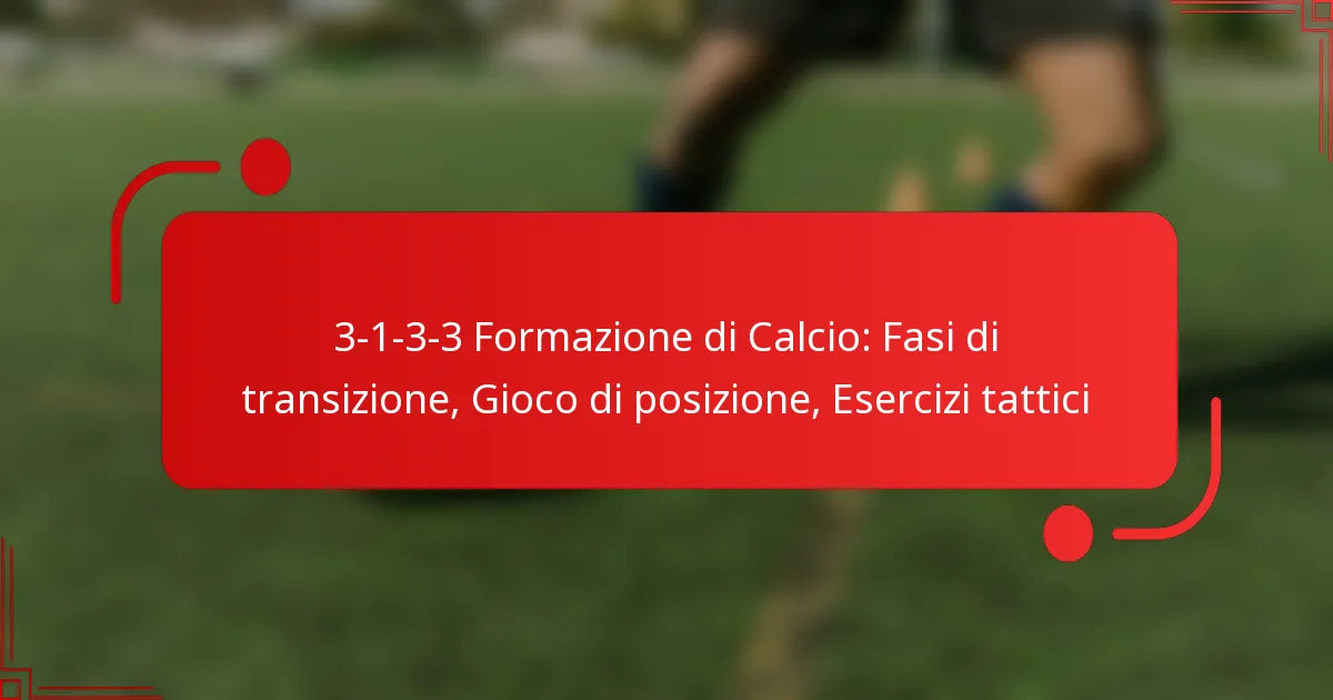 La formazione calcistica 3-1-3-3 è un assetto tattico che bilancia la forza difensiva con le opzioni offensive, caratterizzato da tre difensori, un centrocampista difensivo, tre centrocampisti e tre attaccanti. Questa formazione non solo consente alle squadre di sfruttare la larghezza e la profondità del campo, ma sottolinea anche l’importanza delle fasi di transizione, dove rapidi cambiamenti tra attacco e difesa sono essenziali per mantenere la consapevolezza tattica. Un gioco di posizione efficace e esercitazioni tattiche ben strutturate sono fondamentali per massimizzare l’efficacia della squadra in entrambe le fasi del gioco.
